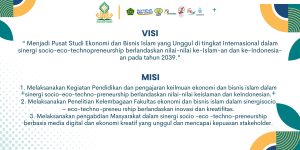 1. Unggul (excellent) yaitu menjadi Fakultas Ekonomi dan Bisnis Islam yang mensinergikan aspek sosio-eco techno-preneurship dalam pengajaran,